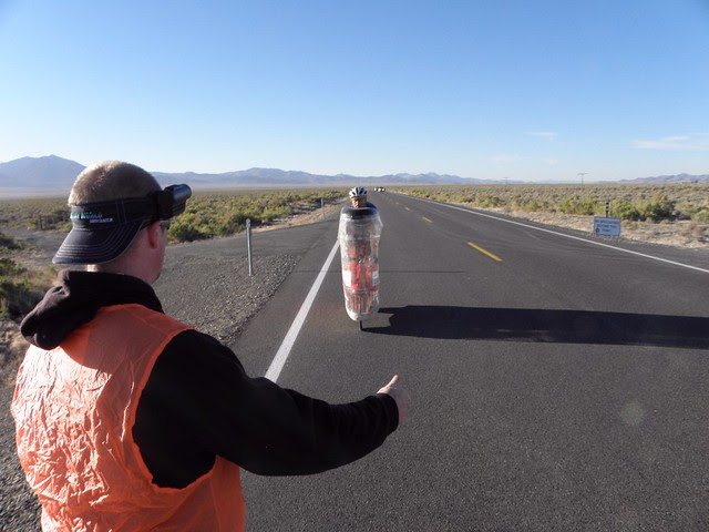 Off to the Civic Center for the debrief. Thomas is credited with a fully-legal 73.85 mph. He's been knocking on the door of 70 since the 2010 event,so this was a very popular result. Lunch, teh Intarwebs and a bit of loafing follow before heading out for the evening runs. The wind seems about the same as yesterday but its certainly warmer, which ought to help speeds. I have elected to join Vicky Johnsen at Ranch Road 1 - this is about a mile from the start hence the machines are running more slowly and should be easier to photograph. At least, that's the theory but I came back to base with a fair number of photos of half a vehicle. One day I'll RTFM.